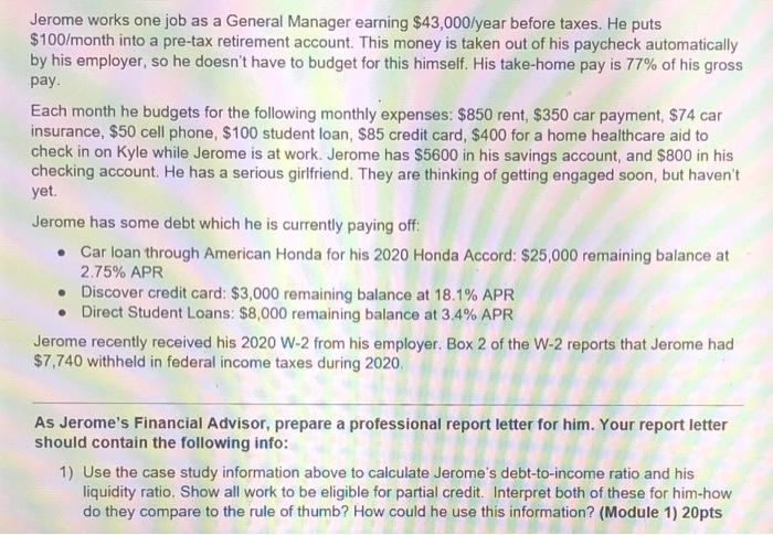 Jerome Works One Job As A General Manager Earning Chegg Com